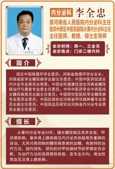 三十八載行醫(yī)路,謹(jǐn)言慎行,篤學(xué)不倦,為眾多糖尿病患者解除病痛;緊隨國(guó)內(nèi)外發(fā)展步伐,推動(dòng)內(nèi)分泌事業(yè)高質(zhì)量發(fā)展,為千萬(wàn)病患帶來(lái)福音;熱衷醫(yī)學(xué),教研并進(jìn),花甲之年,依然用自己的激情點(diǎn)燃學(xué)生的激情,帶動(dòng)學(xué)科發(fā)展不遺余力。他就是鄭州西區(qū)中醫(yī)院業(yè)務(wù)院長(zhǎng)李全忠。