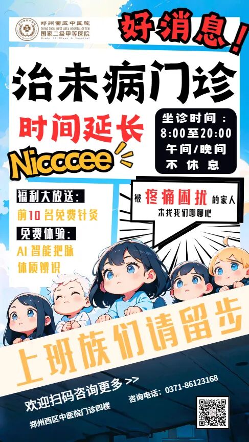 不管你是中午午休想抽空調(diào)理,還是下班后想放松身心,都能隨時來門診,不用再為 “沒時間看病” 發(fā)愁,讓健康管理更靈活、更省心。