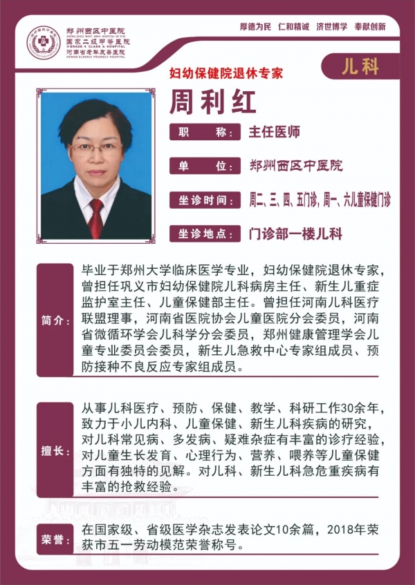 畢業(yè)于鄭州大學(xué)臨床醫(yī)學(xué)專(zhuān)業(yè),婦幼保健院退休專(zhuān)家曾擔(dān)任鞏義市婦幼保健院兒科病房主任、新生兒重癥監(jiān)護(hù)室主任、兒童保健部主任。曾擔(dān)任河南兒科醫(yī)療聯(lián)盟理事,河南省醫(yī)院協(xié)會(huì)兒童醫(yī)院分會(huì)委員,河南省微循環(huán)學(xué)會(huì)兒科學(xué)分會(huì)委員,鄭州健康管理學(xué)會(huì)兒童專(zhuān)業(yè)委員會(huì)委員,新生兒急救中心專(zhuān)家組成員、預(yù)防接種不良反應(yīng)專(zhuān)家組成員。