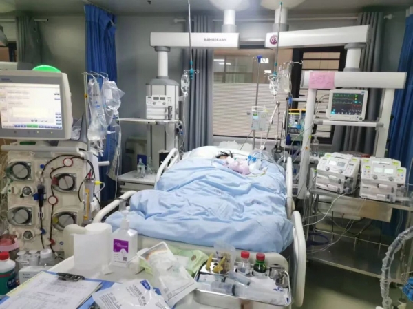 剛?cè)朐簳r(shí),小王的各項(xiàng)檢查結(jié)果讓人心揪——肝腎功能已出現(xiàn)損傷,多臟器衰竭的苗頭初現(xiàn),病情直接判定為危重癥。鄭州西區(qū)中醫(yī)院ICU團(tuán)隊(duì)沒有絲毫遲疑,立刻為她上了持續(xù)床旁血液凈化治療??伤郎癫⑽摧p易退讓:入院第2天,小王的尿量越來(lái)越少,腎功能衰竭的警報(bào)拉響;第3天下午,她突然呼吸急促、渾身發(fā)顫,血氧飽和度一路跌到85%,連話都說(shuō)不出來(lái)?!翱焐虾粑鼨C(jī)!聯(lián)CRRT(連續(xù)性腎臟替代治療)!”楊蔚主任一聲令下,各項(xiàng)搶救措施無(wú)縫銜接,終于為她穩(wěn)住了搖搖欲墜的生命。