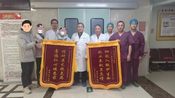 走出ICU大門的那一刻,小王在父母的陪伴下停下腳步,一家三口轉(zhuǎn)過(guò)身,對(duì)著這群日夜守護(hù)的“白衣天使”深深鞠了一躬,久久沒有直起身。患者父母送來(lái)的三面錦旗,紅得格外耀眼,上面“精研醫(yī)術(shù)挽危局”“厚德仁心暖患家”的字樣,是全家最真摯的心聲。這場(chǎng)跨越24天的生死營(yíng)救,不僅是醫(yī)學(xué)的勝利,更讓我們看到:醫(yī)者的堅(jiān)守與溫情,永遠(yuǎn)是照亮生命最暖的光。