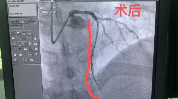 1、39歲男性,前降支閉塞,行血栓抽吸+冠脈內溶栓。